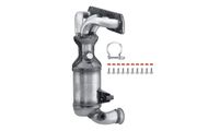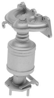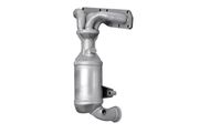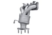 Der Abgaskrümmer (auch Auspuffkrümmer genannt) verdankt seinen Namen seiner Bauform, da er die Abgase des Verbrennungsprozesses vom Motor nach unten in den Auspuff umleiten muss. Als erster Teil der Abgasanlage ist er hohen Temperaturen von über 900°C ausgesetzt und wird daher meist aus legiertem Gusseisen gefertigt. Aber auch Abgaskrümmer aus Edelstahl sind keine Seltenheit. Seine primäre Aufgabe besteht darin, die Abgase aller Zylinder aufzunehmen und an das Abgasrohr weiterzuleiten. Zusätzlich verhindert der Abgaskrümmer, dass andere Bauteile im Motor durch die große thermische Belastung Schaden erleiden. Die Hitze hat aber nicht nur negative Effekte, denn immerhin benötigt der Katalysator hohe Temperaturen, damit die chemischen Reaktionen ablaufen können. Er wird daher meist direkt im Anschluss an den Abgaskrümmer verbaut. In sogenannten Krümmerkatalysatoren werden beide Bauteile zu einem verschmolzen. Sie müssen besonders sorgfältig gefertigt sein, da die Wabenstruktur mit den aufgebrachten Edelmetallen neben großer Hitze auch dem hohem Druck des anströmenden Abgases ausgesetzt ist.