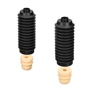 Die Stoßdämpfer eines Autos helfen, die durch Stöße und Unebenheiten eingeleiteten Schwingungen des Fahrzeuges möglichst schnell abklingen zu lassen. Doch damit sie sicher verbaut werden können und lange halten, werden zahlreiche zusätzliche Anbauteile benötigt. Besonders wichtig ist natürlich der Anschlagpuffer, der bei starkem Einfedern verhindert, dass die Kolbenstange den Zylinder durchschlägt. Vor äußeren Einflüssen wie Schmutz oder Spritzwasser wird der Stoßdämpfer durch eine Staubschutzkappe bzw. einen Faltenbalg geschützt. Die Schutzkappen sind in der Regel als Staubschutzsatz für beide Stoßdämpfer einer Achse im Bundle erhältlich.